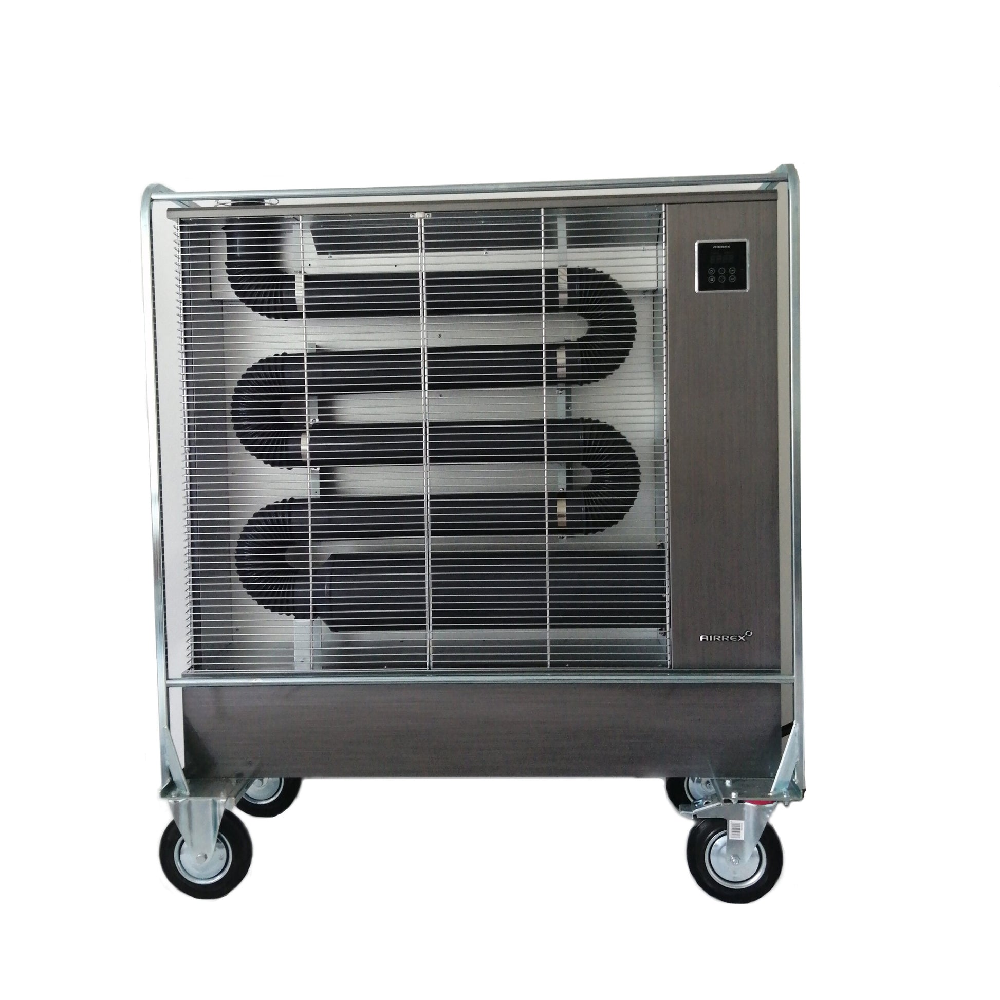 Airrex AH-800 skyddsram skyddar värmaren från stötar i hårdare användning. Nedan finns stora hjul som gör det lättare att flytta värmaren under mer utmanande förhållanden. På den andra sidan av skyddsramen finns lagringsslingor för elkabeln.